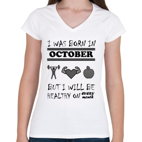 1 kép PRINTFASHION Októberben születtem de minden hónapban egészségesen élek - Női V-nyakú póló - Fehér
