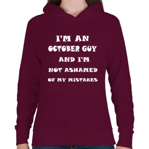 1 kép PRINTFASHION Októberi vagyok és nem szégyellem a hibáimat - Női kapucnis pulóver - Bordó