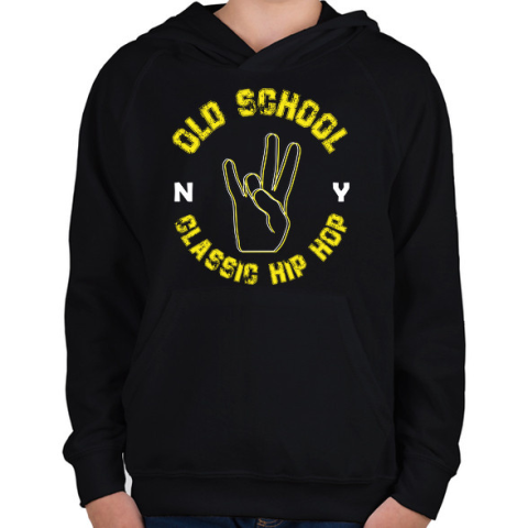 1 kép PRINTFASHION Old school - Gyerek kapucnis pulóver - Fekete
