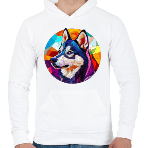 1 kép PRINTFASHION Ólomüveg Husky - Férfi kapucnis pulóver - Fehér