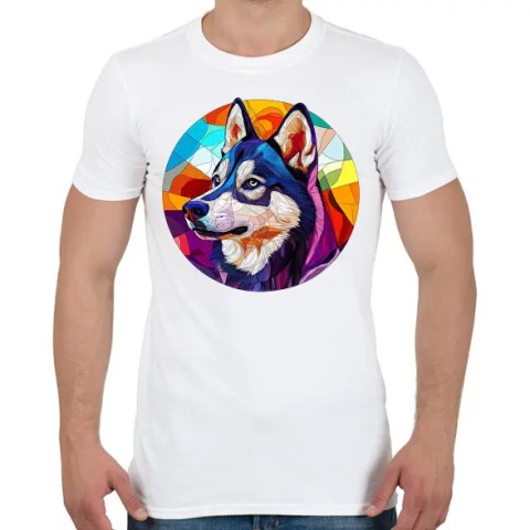 1 kép PRINTFASHION Ólomüveg Husky - Férfi póló - Fehér