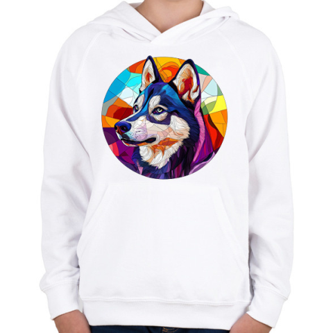 1 kép PRINTFASHION Ólomüveg Husky - Gyerek kapucnis pulóver - Fehér