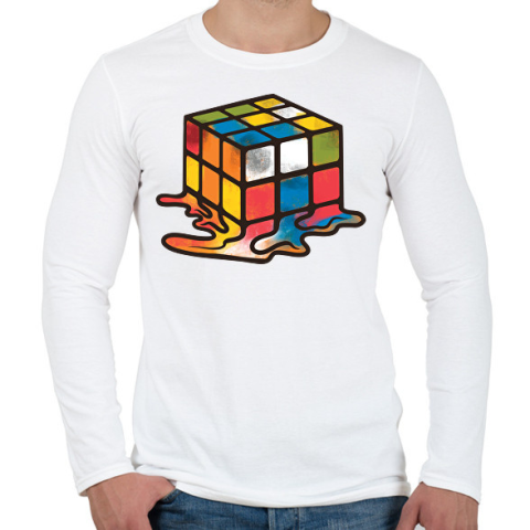1 kép PRINTFASHION Olvadt rubik kocka - Férfi hosszú ujjú póló - Fehér