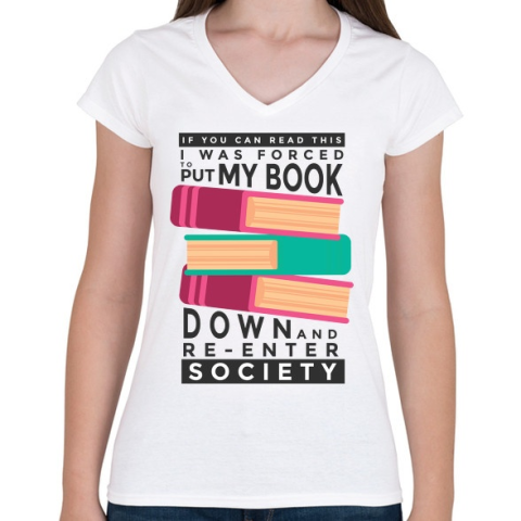 1 kép PRINTFASHION Olvasás - Női V-nyakú póló - Fehér