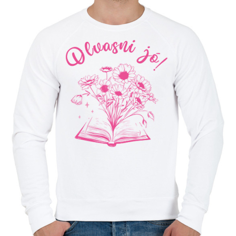 1 kép PRINTFASHION Olvasni jó! - Férfi pulóver - Fehér