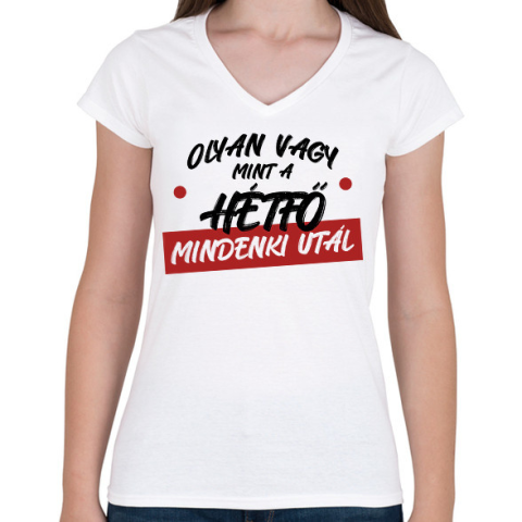 1 kép PRINTFASHION Olyan vagy mint a hétfő - Női V-nyakú póló - Fehér