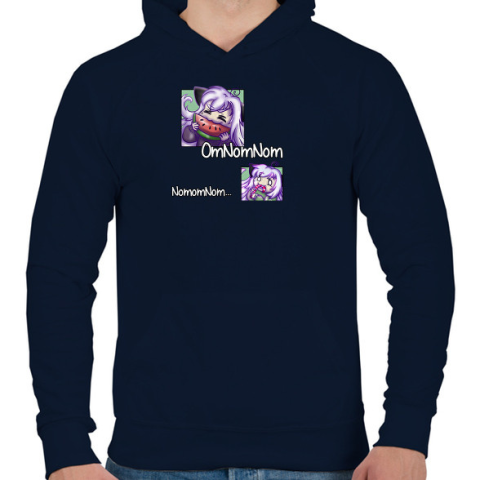 1 kép PRINTFASHION Omnomnom - Férfi kapucnis pulóver - Sötétkék
