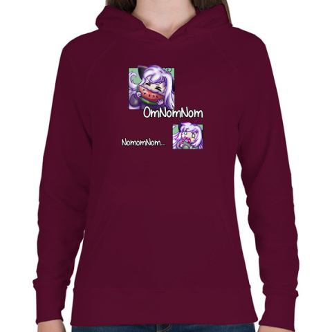1 kép PRINTFASHION Omnomnom - Női kapucnis pulóver - Bordó