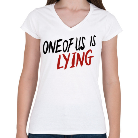 1 kép PRINTFASHION One of us is Lying - Női V-nyakú póló - Fehér