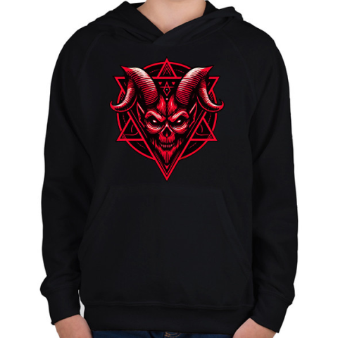 1 kép PRINTFASHION Ördög - Gyerek kapucnis pulóver - Fekete