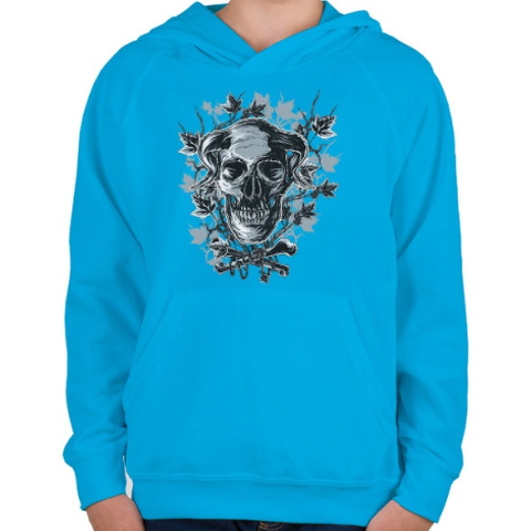 1 kép PRINTFASHION Ördögkoponya - Gyerek kapucnis pulóver - Azúrkék