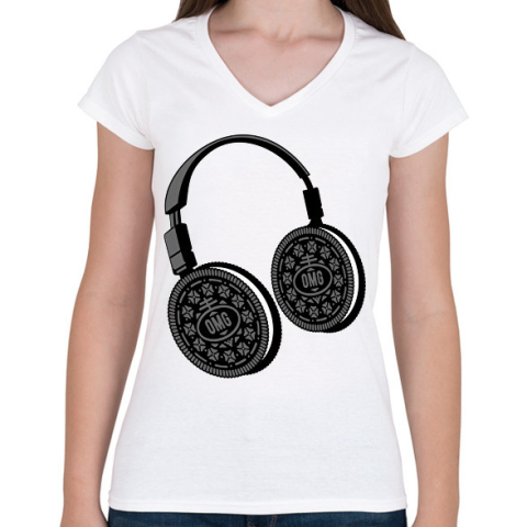 1 kép PRINTFASHION Oreo fülhallgató - Női V-nyakú póló - Fehér
