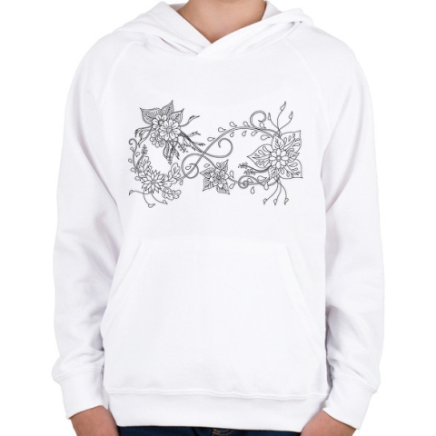 1 kép PRINTFASHION Örökké virágokkal, fekete-fehér kiszínezhető mintával - Gyerek kapucnis pulóver - Fehér