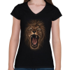 1 kép PRINTFASHION Oroszlán - Női V-nyakú póló - Fekete