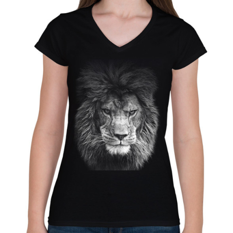 1 kép PRINTFASHION oroszlán - Női V-nyakú póló - Fekete