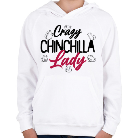 1 kép PRINTFASHION Őrült csincsillás nő - Gyerek kapucnis pulóver - Fehér