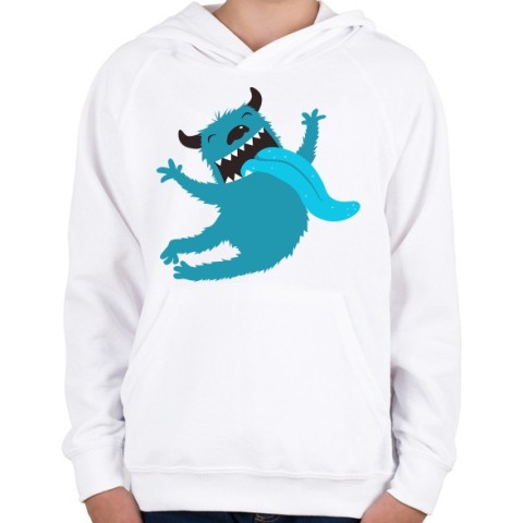 1 kép PRINTFASHION Őrült kék szörnyecske - Gyerek kapucnis pulóver - Fehér