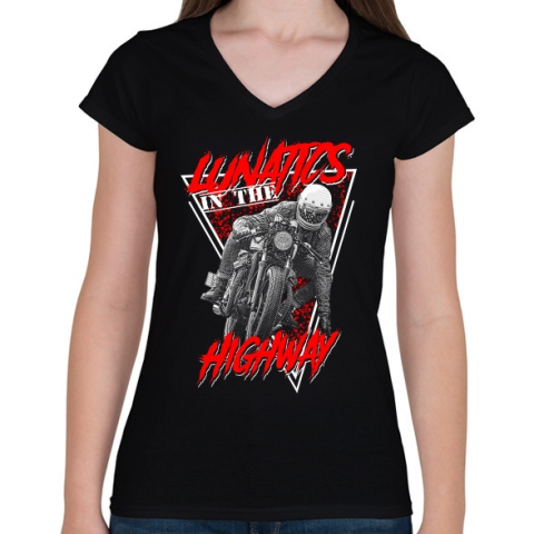 1 kép PRINTFASHION Őrült motoros az országúton - Női V-nyakú póló - Fekete
