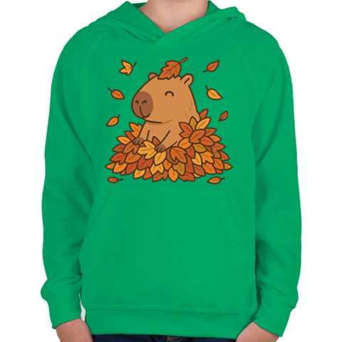 1 kép PRINTFASHION Őszi kapibara - Gyerek kapucnis pulóver - Zöld