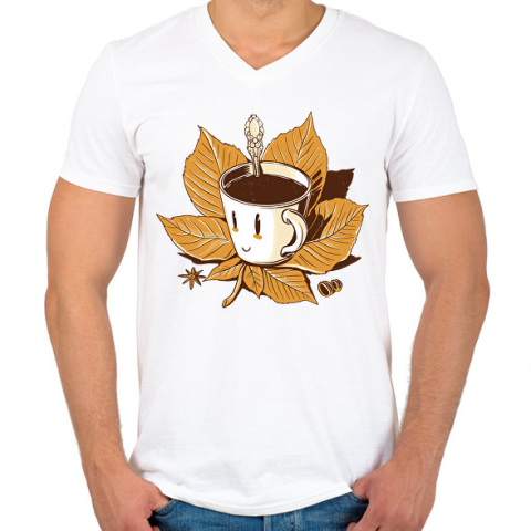 1 kép PRINTFASHION Őszi kávé - Férfi V-nyakú póló - Fehér
