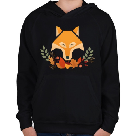 1 kép PRINTFASHION Őszi Róka - Gyerek kapucnis pulóver - Fekete