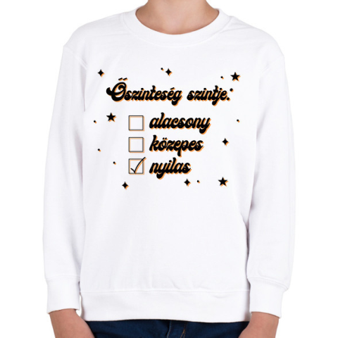 1 kép PRINTFASHION Őszinteség szintje - Gyerek pulóver - Fehér