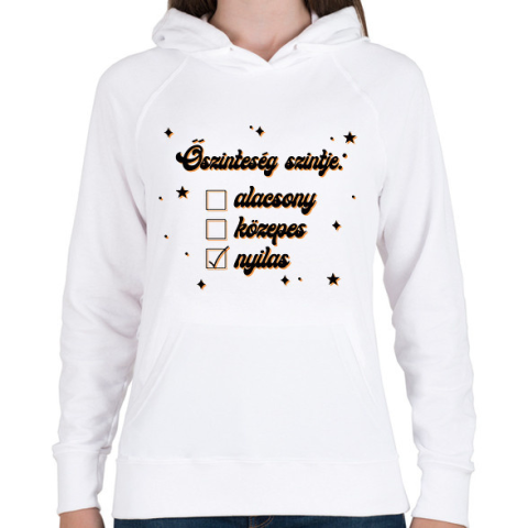 1 kép PRINTFASHION Őszinteség szintje - Női kapucnis pulóver - Fehér
