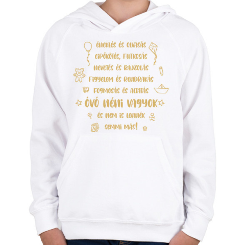 1 kép PRINTFASHION Óvó néni vagyok és nem lennék semmi más - Gyerek kapucnis pulóver - Fehér