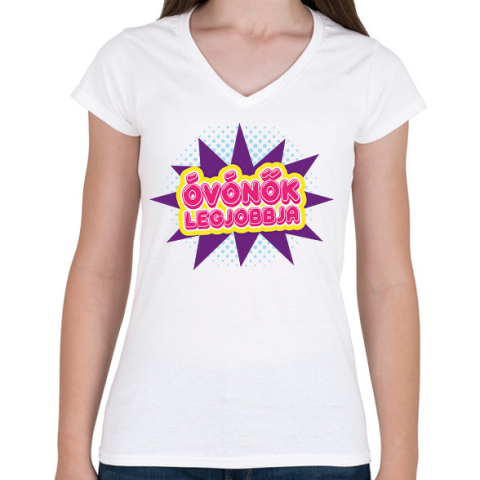 1 kép PRINTFASHION Óvónők legjobbja - Női V-nyakú póló - Fehér