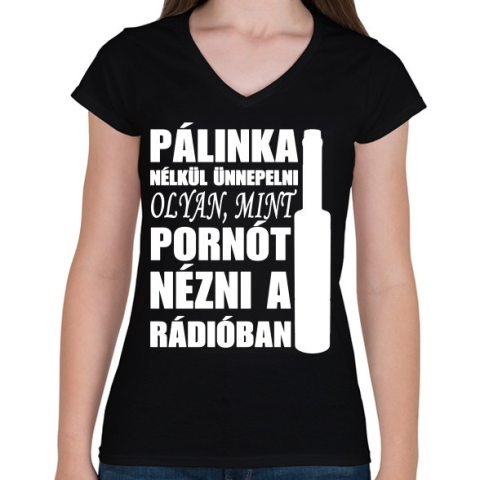 1 kép PRINTFASHION Pálinka nélkül nincs ünneplés - Női V-nyakú póló - Fekete