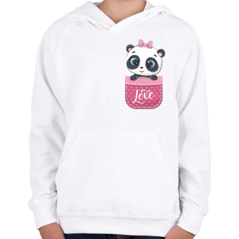 1 kép PRINTFASHION Panda a zsebben - Gyerek kapucnis pulóver - Fehér