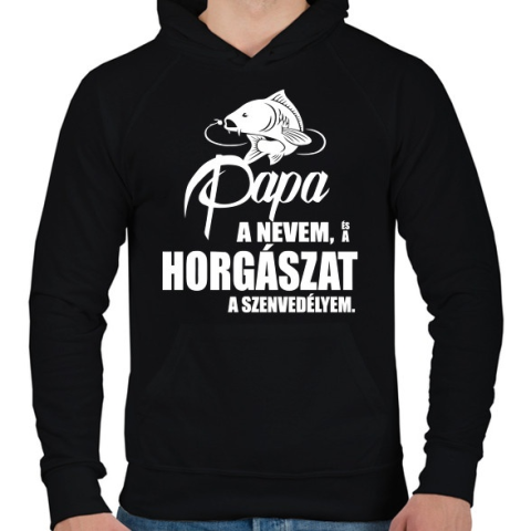 1 kép PRINTFASHION Papa a nevem... - Férfi kapucnis pulóver - Fekete