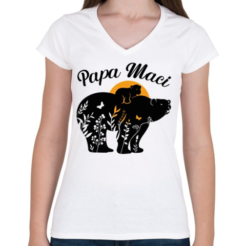 1 kép PRINTFASHION Papa maci - Női V-nyakú póló - Fehér