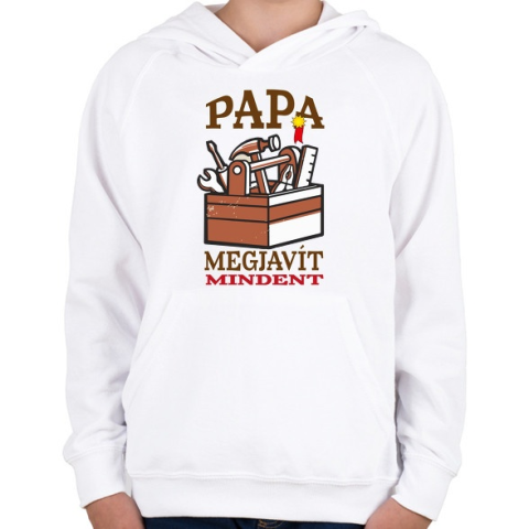 1 kép PRINTFASHION Papa megjavít mindent - Gyerek kapucnis pulóver - Fehér