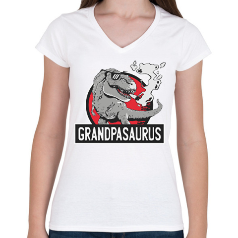 1 kép PRINTFASHION Papa szaurusz grandpasaurus - Női V-nyakú póló - Fehér