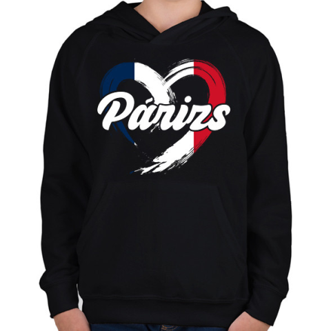 1 kép PRINTFASHION Párizs - Gyerek kapucnis pulóver - Fekete