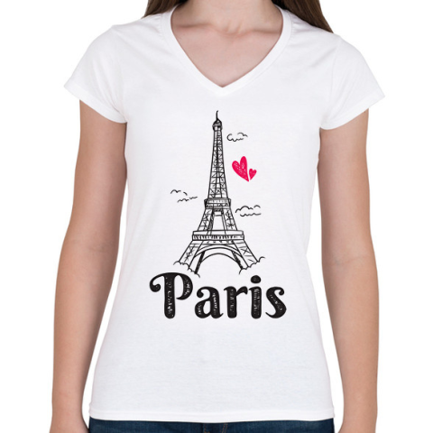 1 kép PRINTFASHION Párizs - Női V-nyakú póló - Fehér