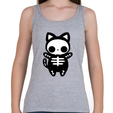 1 kép PRINTFASHION páros póló - csontváz cica - Női atléta - Sport szürke