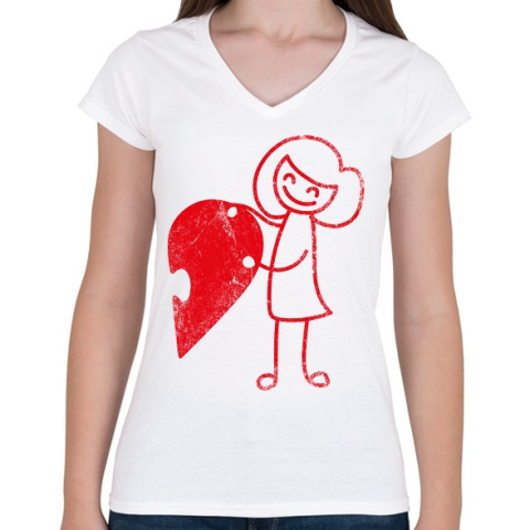 1 kép PRINTFASHION Páros szív puzzle 2 - Női V-nyakú póló - Fehér