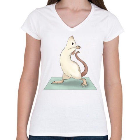 1 kép PRINTFASHION Patkány jóga - Női V-nyakú póló - Fehér