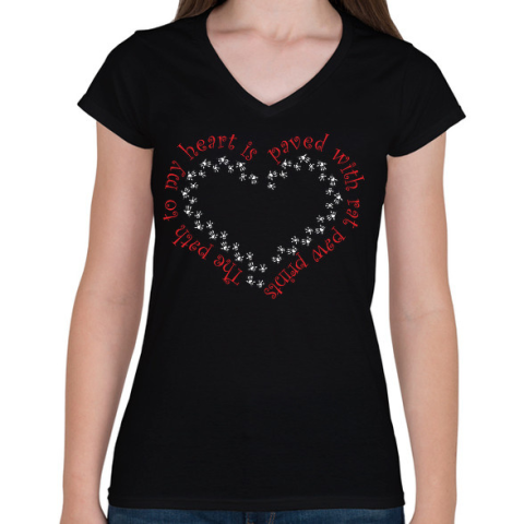 1 kép PRINTFASHION Patkány mancsnyomok - Női V-nyakú póló - Fekete