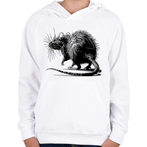 1 kép PRINTFASHION Patkány rajz - Gyerek kapucnis pulóver - Fehér