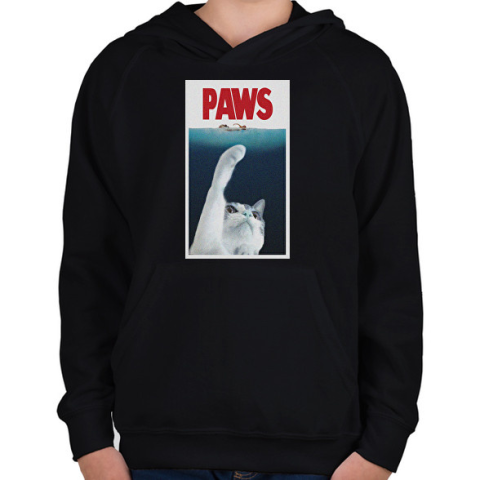 1 kép PRINTFASHION PAWS cápa cica - Gyerek kapucnis pulóver - Fekete
