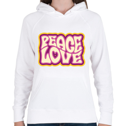 1 kép PRINTFASHION Peace, Love - Hippie - Női kapucnis pulóver - Fehér