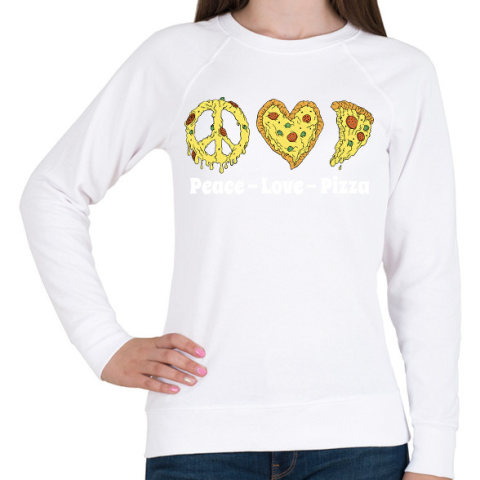 1 kép PRINTFASHION Peace, love, pizza - Női pulóver - Fehér