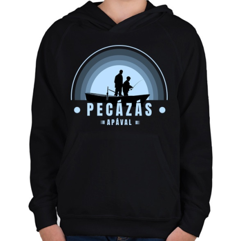 1 kép PRINTFASHION Pecázás apával - Gyerek kapucnis pulóver - Fekete