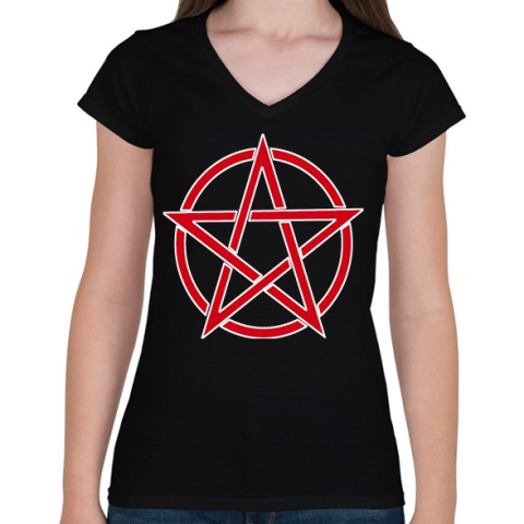 1 kép PRINTFASHION pentagram - Női V-nyakú póló - Fekete