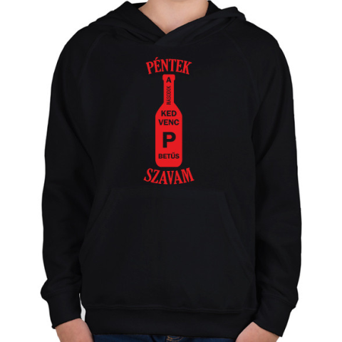 1 kép PRINTFASHION Péntek a második kedvenc P betűs szavam - Gyerek kapucnis pulóver - Fekete