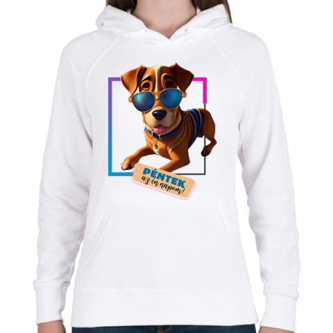 1 kép PRINTFASHION Péntek az én napom! - Vicces kutyás póló minta - Női kapucnis pulóver - Fehér