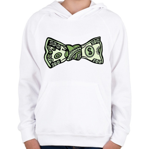 1 kép PRINTFASHION Pénz csokornyakkendő - Gyerek kapucnis pulóver - Fehér